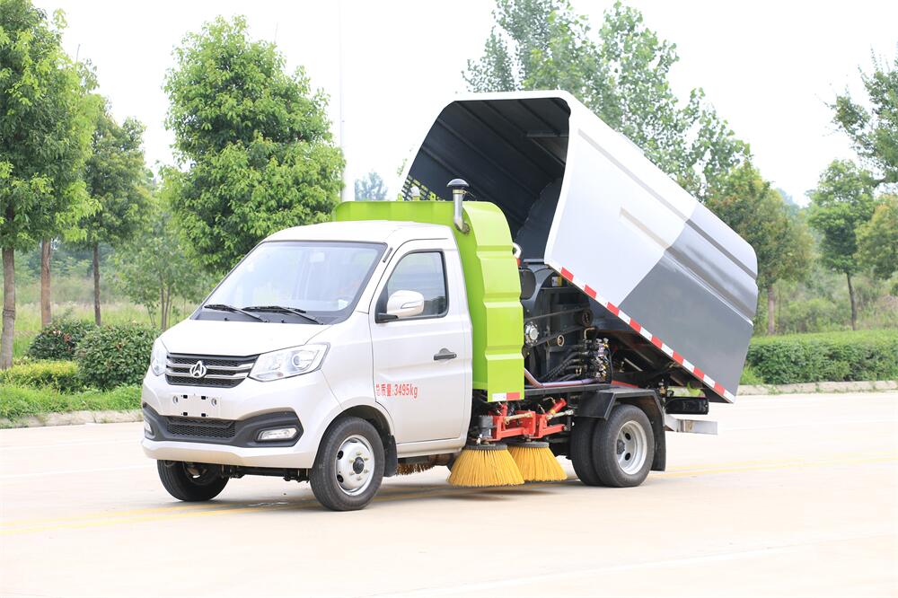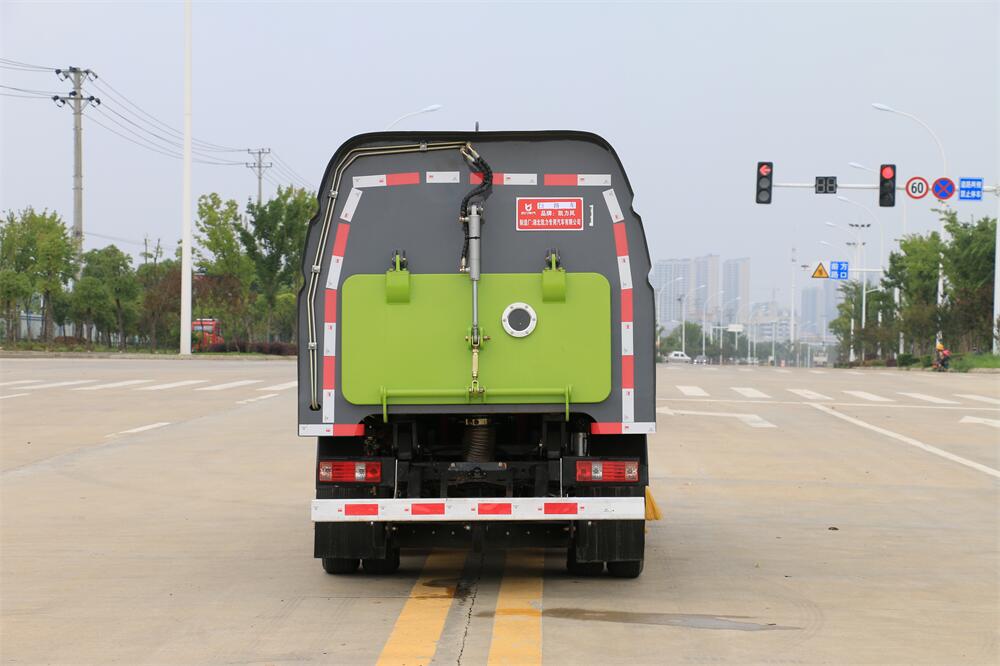 1.采用吸掃混合的方式收集垃圾,濕式除塵、電液,液壓傾翻卸料的作業(yè)方式對路面進行清掃作業(yè)。