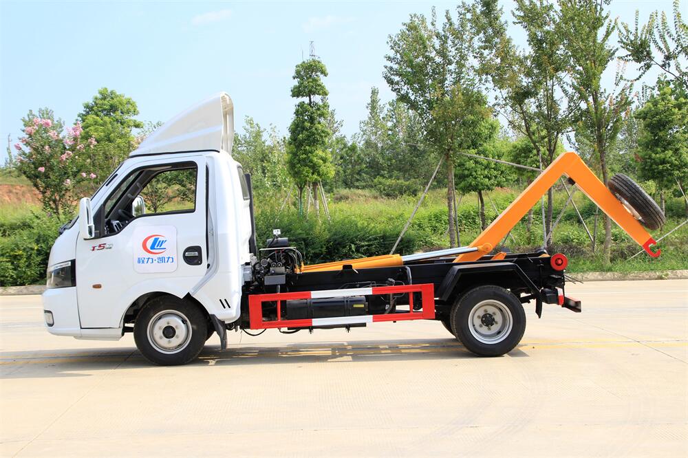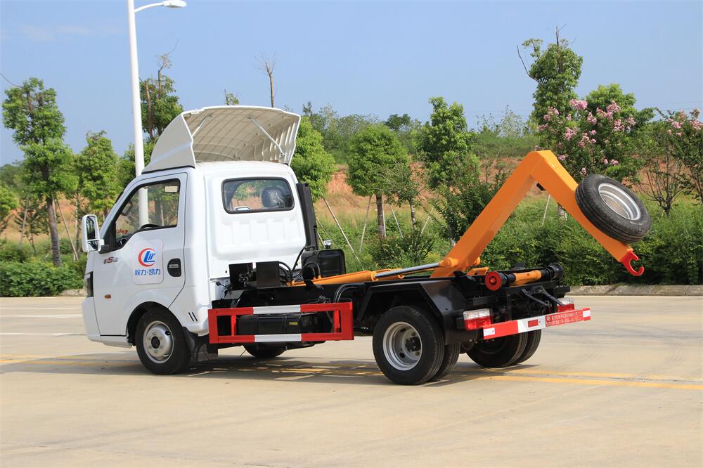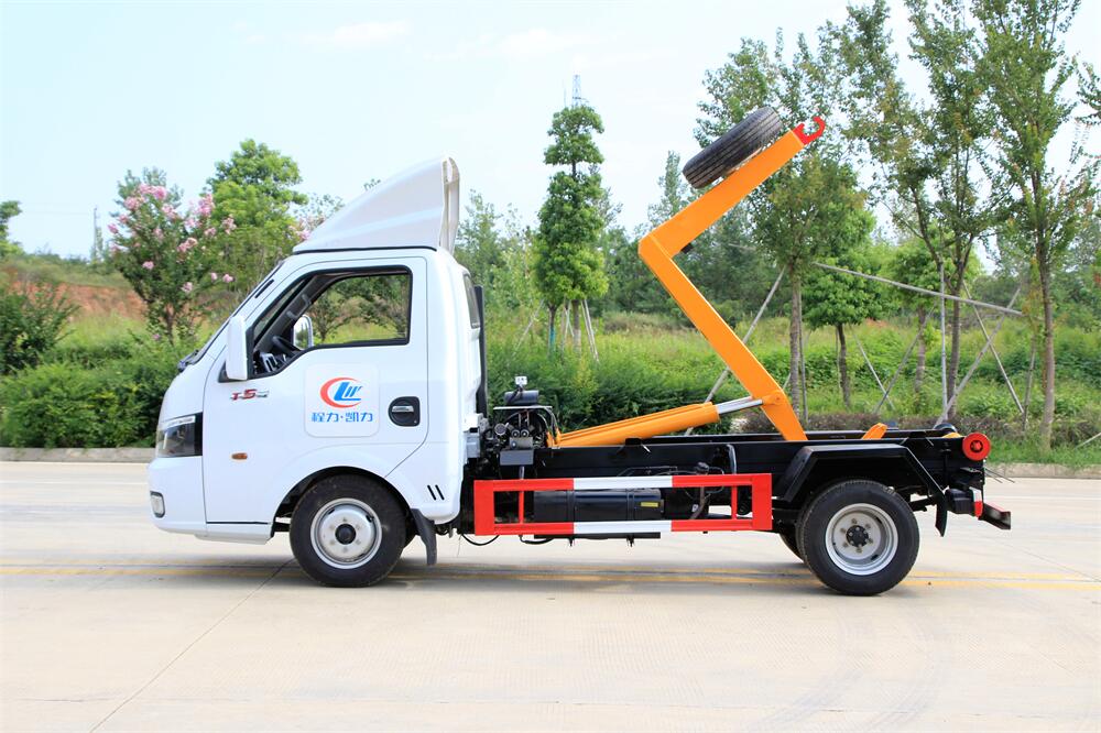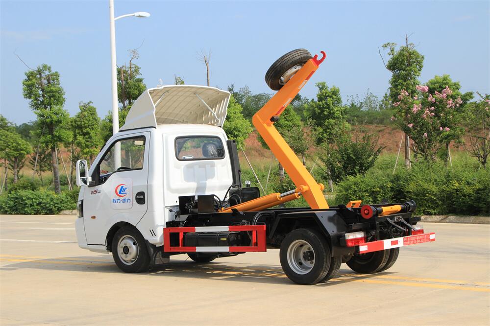 勾臂式垃圾車(車廂可卸式垃圾車)介紹: 車廂可卸式垃圾車又叫拉臂式垃圾車,是一種采用高新設計可伸縮的鉤臂,實現垃圾廂的二次吊裝,自吊上放下,可自行傾倒垃圾的環衛設備。 拉臂式垃圾車結構簡單,操作穩定方便,裝卸效率高,機械化程度高,節省人力。鉤臂垃圾車一車可帶多個垃圾廂,在裝卸的運輸過程中可有效地避免二次污染。 拉臂垃圾車采用高新設計可擺動的鉤臂,垃圾箱由框架、開啟油缸、滑輪、后門和若干加強框架與鋼板焊接而成。調換貨廂快捷方便,貨廂上帶蓋(倒垃圾時可翻開),鉤臂垃圾車垃圾廂體可選用碳鋼、不銹鋼材質、內部采取環氧樹脂防腐處理,改裝部分與原車底盤為可分離式,維修方便且保持了原車的機動性及行駛性能。