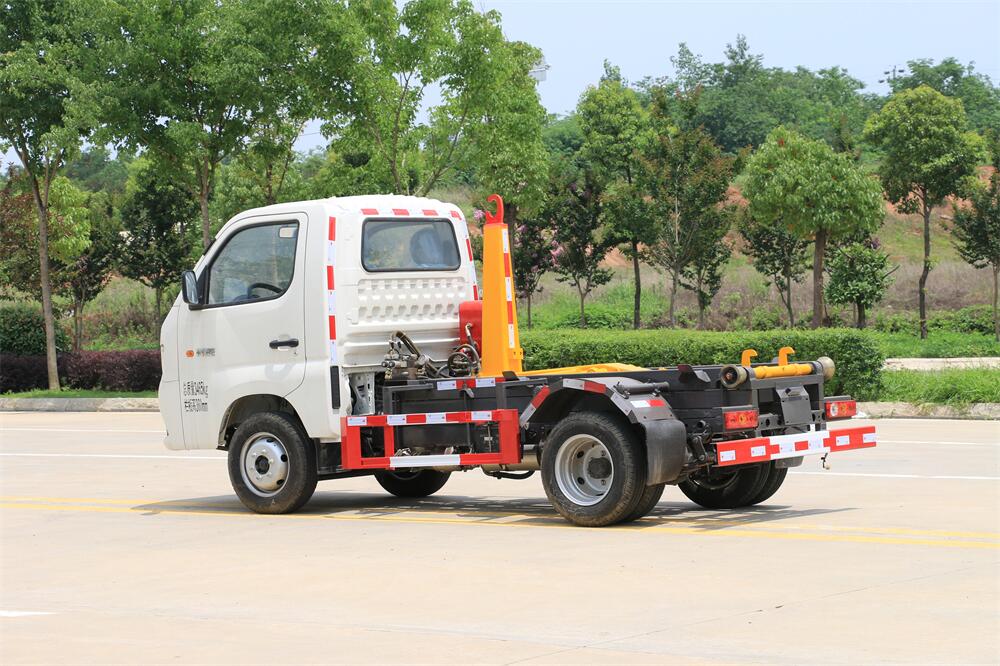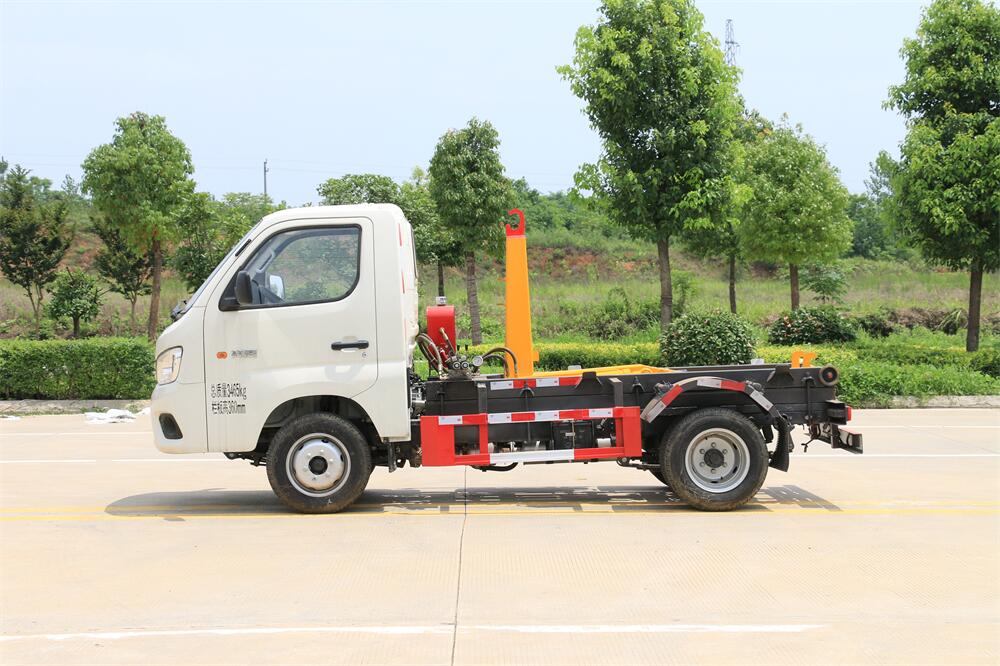 勾臂式垃圾車(chē)(車(chē)廂可卸式垃圾車(chē))介紹: 車(chē)廂可卸式垃圾車(chē)又叫拉臂式垃圾車(chē),是一種采用高新設(shè)計(jì)可伸縮的鉤臂,實(shí)現(xiàn)垃圾廂的二次吊裝,自吊上放下,可自行傾倒垃圾的環(huán)衛(wèi)設(shè)備。 拉臂式垃圾車(chē)結(jié)構(gòu)簡(jiǎn)單,操作穩(wěn)定方便,裝卸效率高,機(jī)械化程度高,節(jié)省人力。鉤臂垃圾車(chē)一車(chē)可帶多個(gè)垃圾廂,在裝卸的運(yùn)輸過(guò)程中可有效地避免二次污染。 拉臂垃圾車(chē)采用高新設(shè)計(jì)可擺動(dòng)的鉤臂,垃圾箱由框架、開(kāi)啟油缸、滑輪、后門(mén)和若干加強(qiáng)框架與鋼板焊接而成。調(diào)換貨廂快捷方便,貨廂上帶蓋(倒垃圾時(shí)可翻開(kāi)),鉤臂垃圾車(chē)?yán)鴰w可選用碳鋼、不銹鋼材質(zhì)、內(nèi)部采取環(huán)氧樹(shù)脂防腐處理,改裝部分與原車(chē)底盤(pán)為可分離式,維修方便且保持了原車(chē)的機(jī)動(dòng)性及行駛性能。