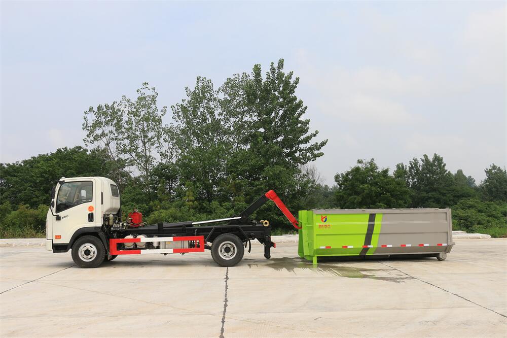勾臂式垃圾車(車廂可卸式垃圾車)介紹: 車廂可卸式垃圾車又叫拉臂式垃圾車,是一種采用高新設(shè)計(jì)可伸縮的鉤臂,實(shí)現(xiàn)垃圾廂的二次吊裝,自吊上放下,可自行傾倒垃圾的環(huán)衛(wèi)設(shè)備。 拉臂式垃圾車結(jié)構(gòu)簡(jiǎn)單,操作穩(wěn)定方便,裝卸效率高,機(jī)械化程度高,節(jié)省人力。鉤臂垃圾車一車可帶多個(gè)垃圾廂,在裝卸的運(yùn)輸過(guò)程中可有效地避免二次污染。 拉臂垃圾車采用高新設(shè)計(jì)可擺動(dòng)的鉤臂,垃圾箱由框架、開啟油缸、滑輪、后門和若干加強(qiáng)框架與鋼板焊接而成。調(diào)換貨廂快捷方便,貨廂上帶蓋(倒垃圾時(shí)可翻開),鉤臂垃圾車?yán)鴰w可選用碳鋼、不銹鋼材質(zhì)、內(nèi)部采取環(huán)氧樹脂防腐處理,改裝部分與原車底盤為可分離式,維修方便且保持了原車的機(jī)動(dòng)性及行駛性能。