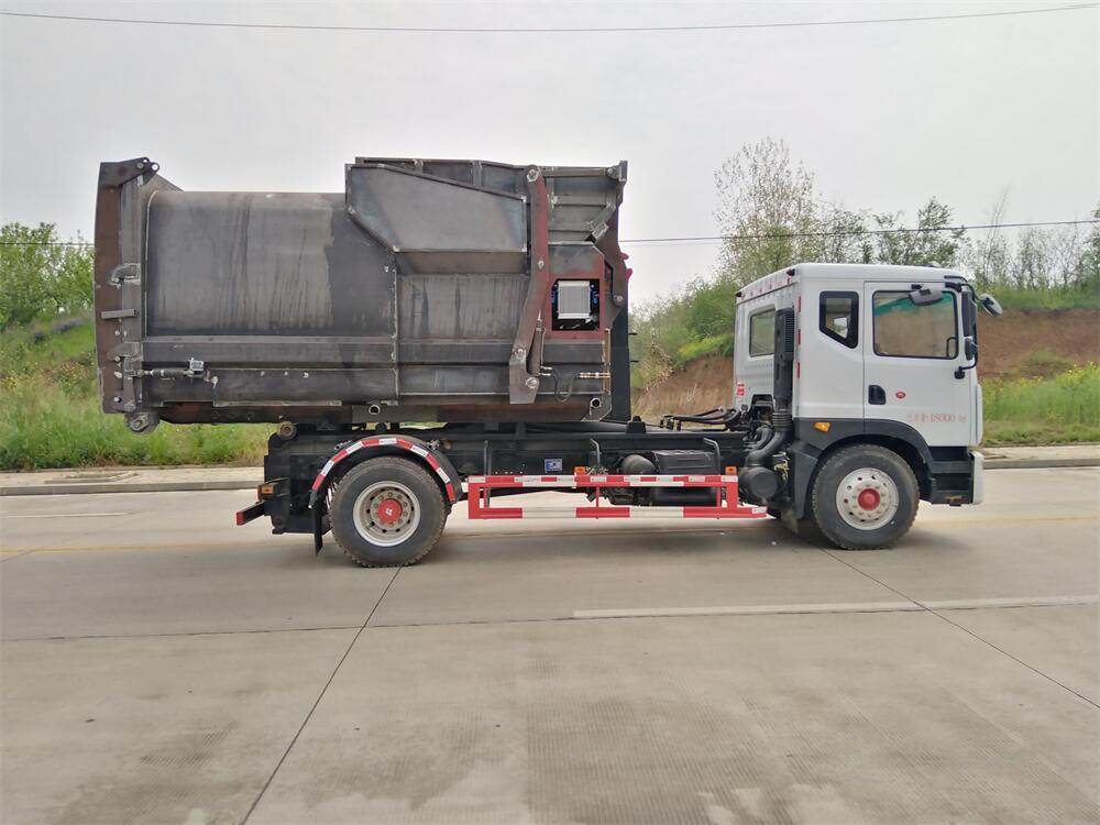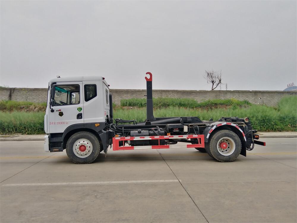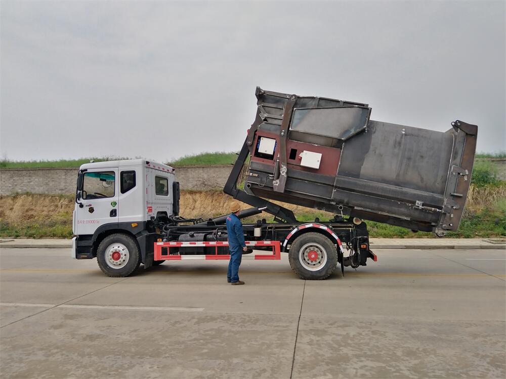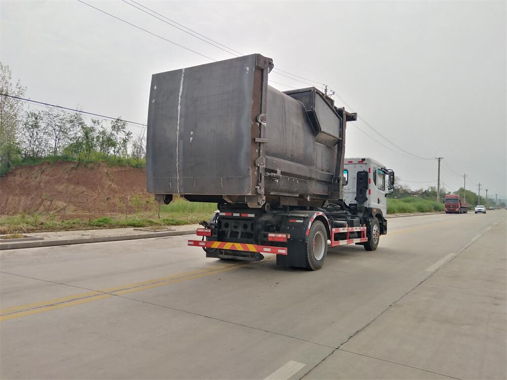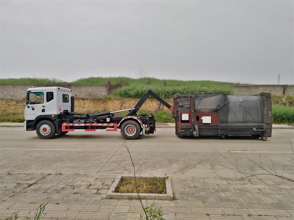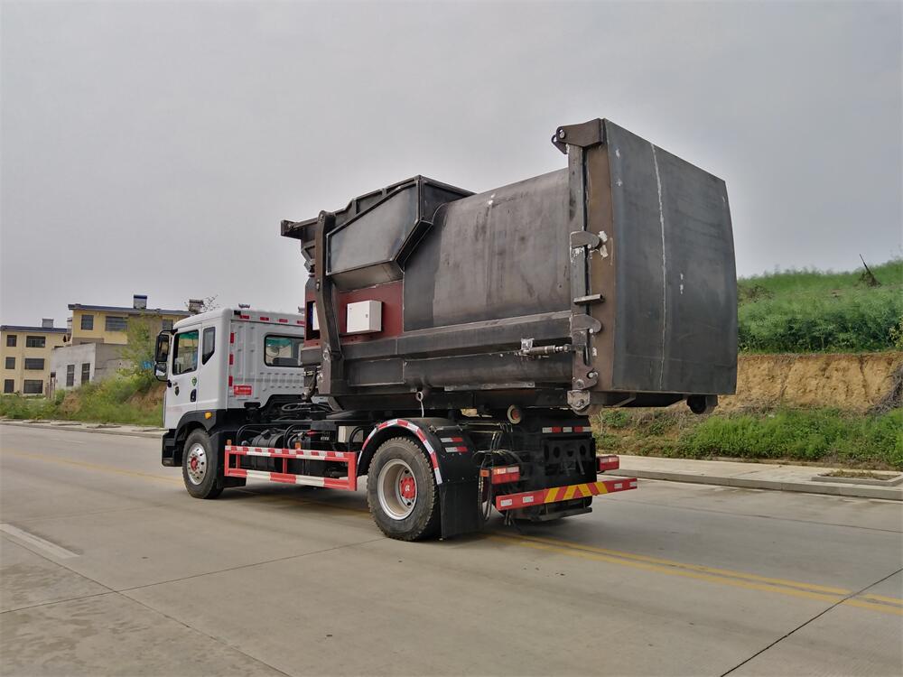 勾臂式垃圾車(車廂可卸式垃圾車)介紹: 車廂可卸式垃圾車又叫拉臂式垃圾車,是一種采用高新設(shè)計(jì)可伸縮的鉤臂,實(shí)現(xiàn)垃圾廂的二次吊裝,自吊上放下,可自行傾倒垃圾的環(huán)衛(wèi)設(shè)備。 拉臂式垃圾車結(jié)構(gòu)簡單,操作穩(wěn)定方便,裝卸效率高,機(jī)械化程度高,節(jié)省人力。鉤臂垃圾車一車可帶多個(gè)垃圾廂,在裝卸的運(yùn)輸過程中可有效地避免二次污染。 拉臂垃圾車采用高新設(shè)計(jì)可擺動(dòng)的鉤臂,垃圾箱由框架、開啟油缸、滑輪、后門和若干加強(qiáng)框架與鋼板焊接而成。調(diào)換貨廂快捷方便,貨廂上帶蓋(倒垃圾時(shí)可翻開),鉤臂垃圾車?yán)鴰w可選用碳鋼、不銹鋼材質(zhì)、內(nèi)部采取環(huán)氧樹脂防腐處理,改裝部分與原車底盤為可分離式,維修方便且保持了原車的機(jī)動(dòng)性及行駛性能。