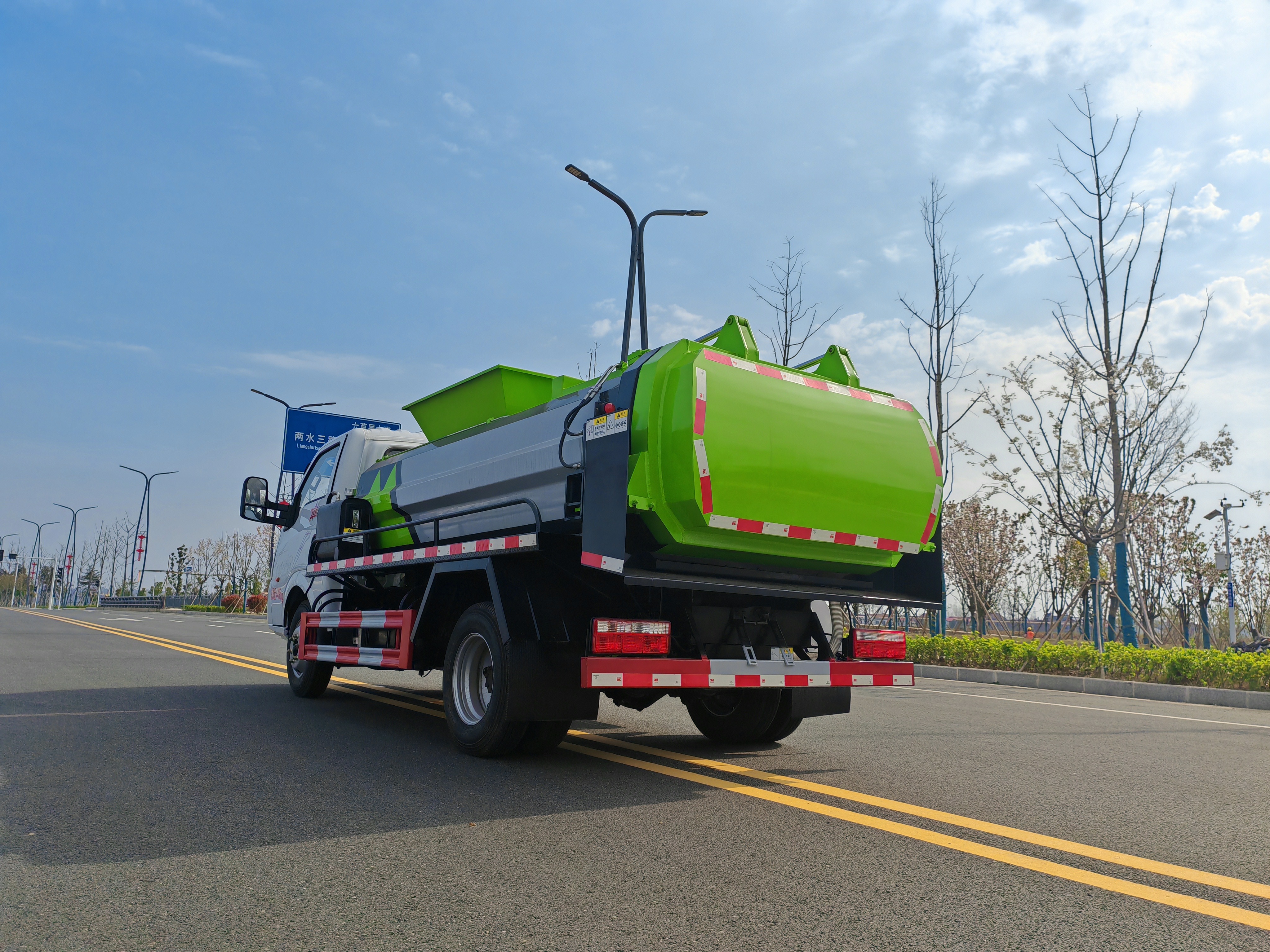 上裝配置:采用Q710高強(qiáng)鋼,邊2底4,輕量化設(shè)計(jì),大容量,上藍(lán)牌,不超重,高度可選可進(jìn)地下室高度。加強(qiáng)型方形罐體,采用國(guó)內(nèi)知名品牌液壓系統(tǒng)(國(guó)產(chǎn)知名油泵、湖南長(zhǎng)沙國(guó)產(chǎn)知名多路閥、餐廚專用定制油缸、浙江嘉善取力器),①選裝拉桿或鏈條式提升機(jī),可掛120L/240L標(biāo)準(zhǔn)塑料垃圾桶。②后蓋液壓開(kāi)啟、液壓鎖緊,后蓋帶有密封條,搭配插銷(xiāo)可調(diào)節(jié)式液壓鎖緊保證滴水不漏。③中置雙頂舉升卸料,卸料角度可根據(jù)需求調(diào)節(jié)。④帶無(wú)線遙控操作更方便。