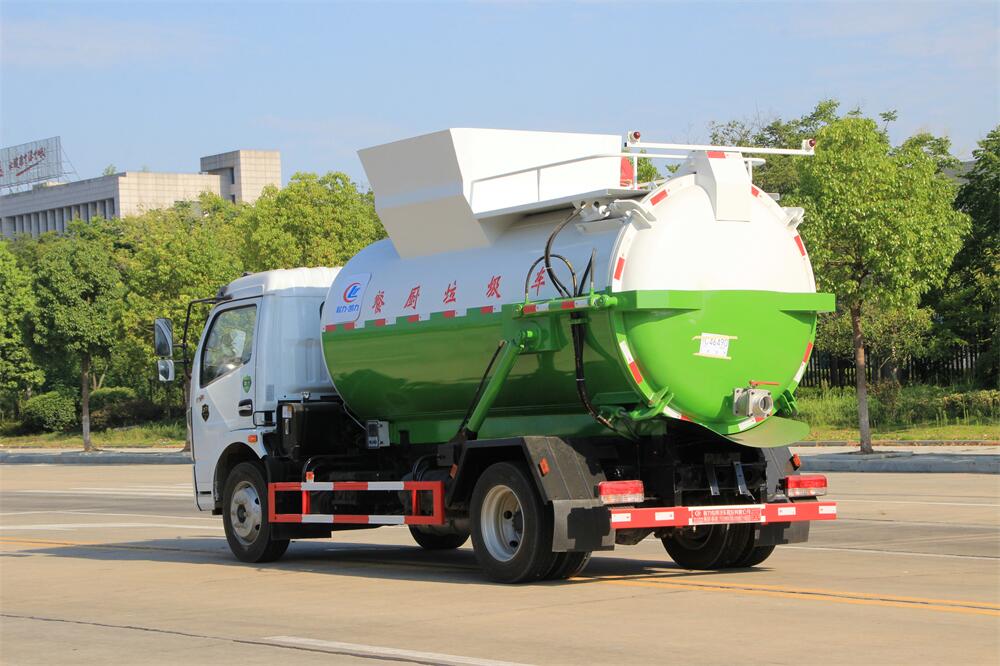 上裝配置:罐體容積8m3,配備120L/240L掛桶提升翻轉(zhuǎn)機(jī)構(gòu),液壓系統(tǒng),后蓋液壓鎖緊開啟,罐體可以舉升自卸,尾部帶自流閥;用于運(yùn)輸液態(tài)垃圾,其特點(diǎn)操作簡(jiǎn)單,密封性好,無(wú)泄漏,無(wú)異味;可選裝固液分離功能,推板擠壓功能,常用于餐館的垃圾轉(zhuǎn)運(yùn)處理。