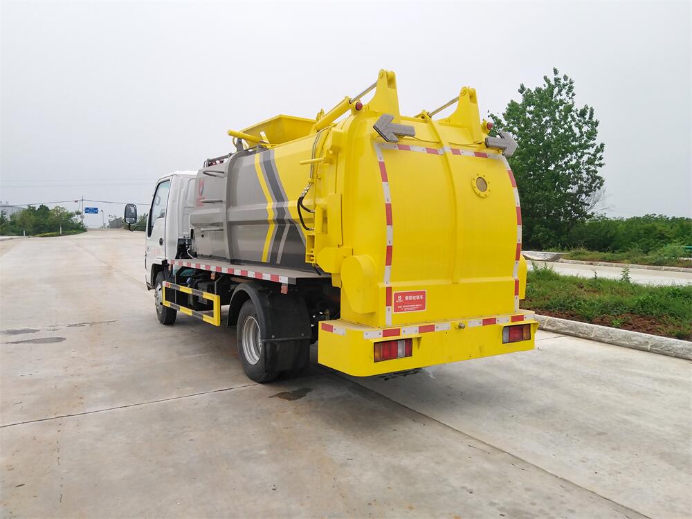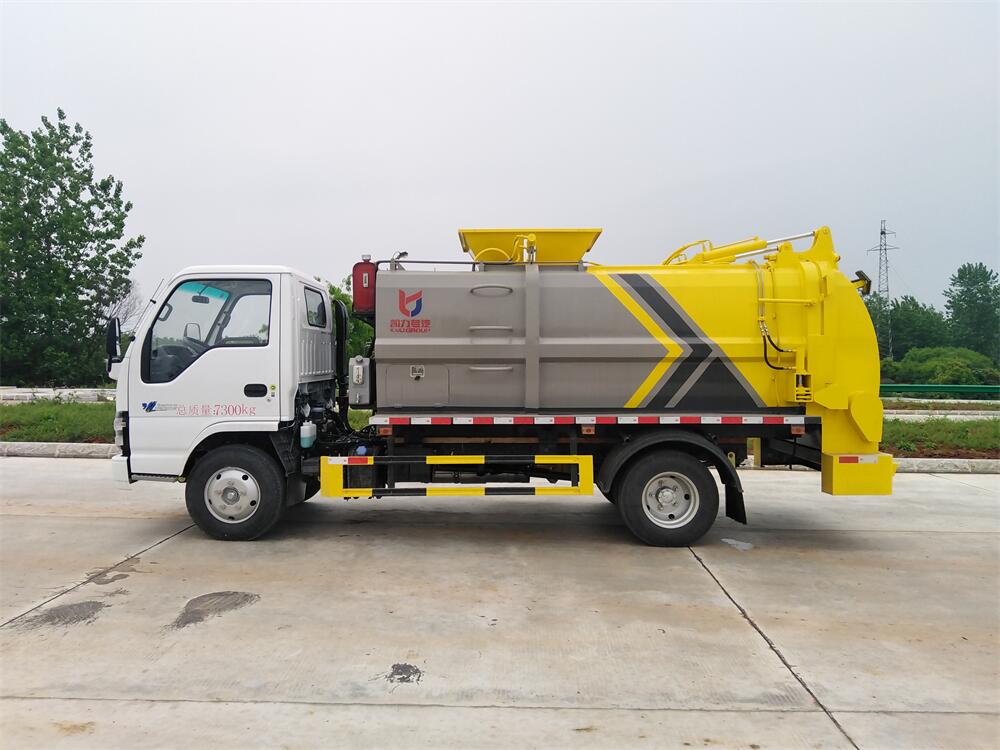 上裝配置:罐體容積6m3,配備120L/240L掛桶提升翻轉機構,液壓系統,后蓋液壓鎖緊開啟,罐體可以舉升自卸,尾部帶自流閥;用于運輸液態垃圾,其特點操作簡單,密封性好,無泄漏,無異味;可選裝固液分離功能,推板擠壓功能,常用于餐館的垃圾轉運處理。