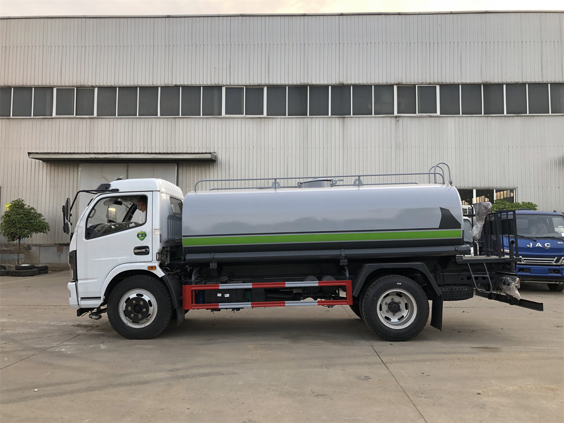 灑水車前裝有鴨形噴嘴或圓頭沖嘴,后面裝有圓柱開灑水噴嘴或蓮蓬頭噴嘴,后部有一工作平臺,裝配有水炮。后部還可裝8個噴嘴(選裝)。