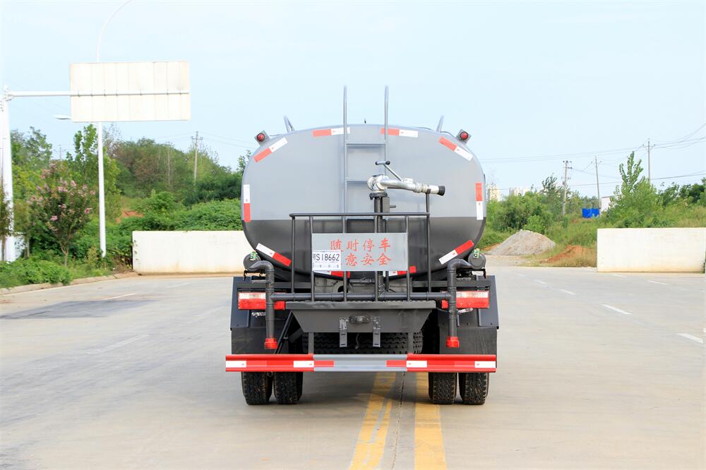 灑水車前裝有鴨形噴嘴或圓頭沖嘴,后面裝有圓柱開灑水噴嘴或蓮蓬頭噴嘴,后部有一工作平臺(tái),裝配有水炮。后部還可裝8個(gè)噴嘴(選裝)。
