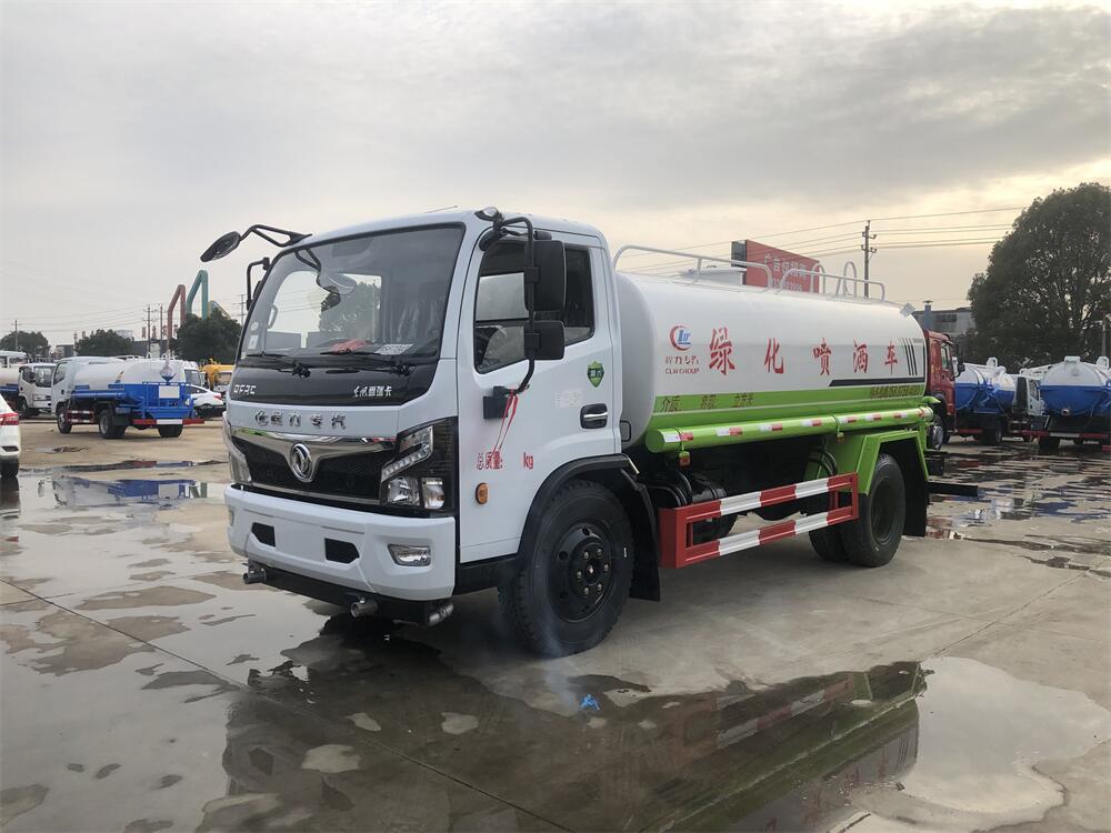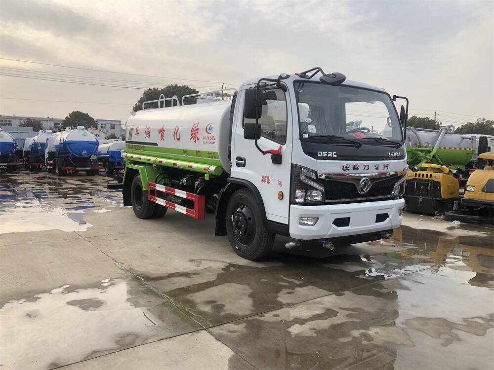 灑水車前裝有鴨形噴嘴或圓頭沖嘴,后面裝有圓柱開灑水噴嘴或蓮蓬頭噴嘴,后部有一工作平臺,裝配有水炮。后部還可裝8個噴嘴(選裝)。