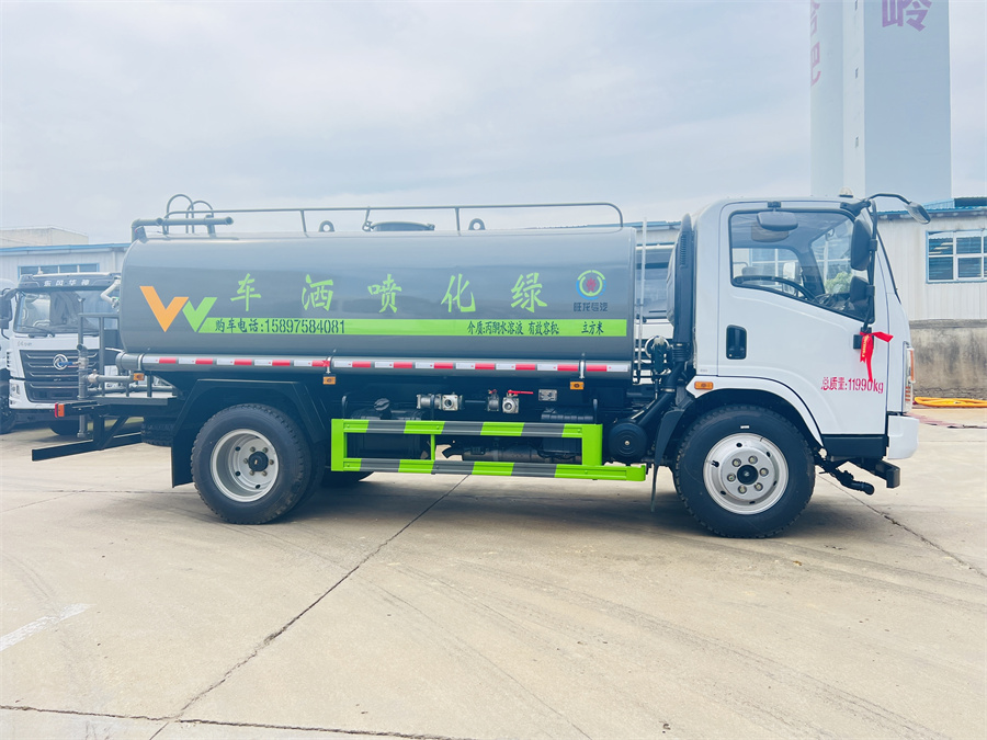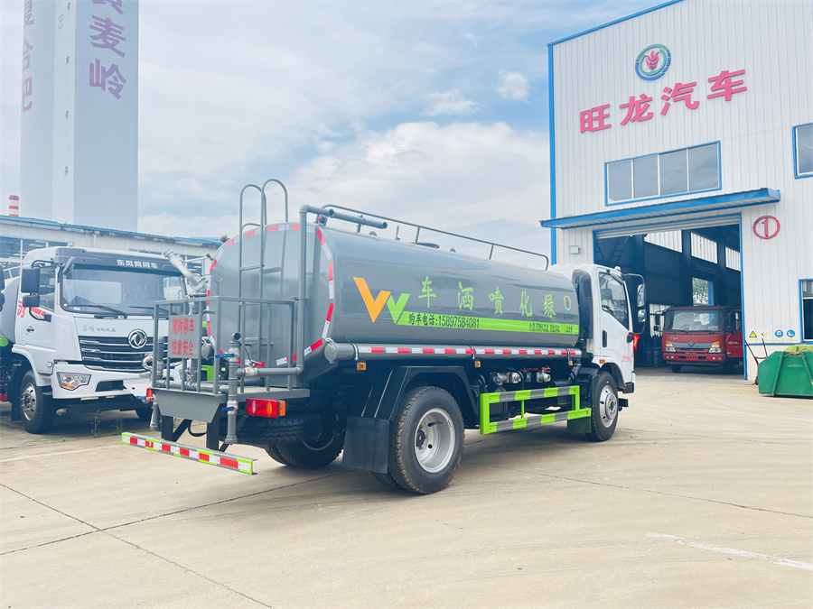 灑水車性能特點:前沖(噴)后灑,帶側噴,罐體后帶工作平臺,平臺上安裝綠化灑水炮,灑水炮可360旋轉,可連續(xù)調成直沖狀、大雨、小雨、毛毛雨,帶安全護欄,配備全國質量評比**名的杭州威龍大功率專用 灑水泵,泵可自吸自排,安裝過濾網,帶消防接口,可通過消防栓進水,帶自流閥,隨車選裝20米綠化卷盤,可噴灑農藥。