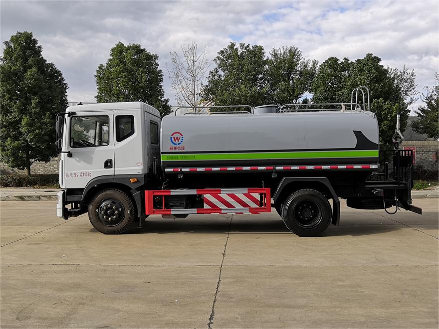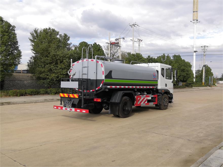 灑水車前裝有鴨形噴嘴或圓頭沖嘴,后面裝有圓柱開灑水噴嘴或蓮蓬頭噴嘴,后部有一工作平臺,裝配有水炮。后部還可裝8個噴嘴(選裝)。