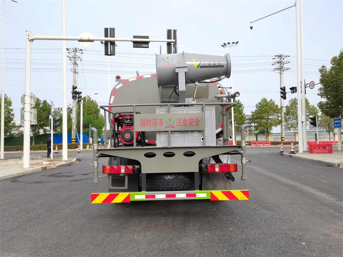 主要由發動機帶動變速箱,變速箱上安裝的取力器帶動灑水泵,灑水泵產生動力,將罐體內部的液體通過管網噴灑出去。工作范圍:自吸高度:≥7m,灑水寬度:≥14m,**大射程:≥28m;可調節成柱狀,射程≥28m;也可調節成霧狀,射程≥5m。