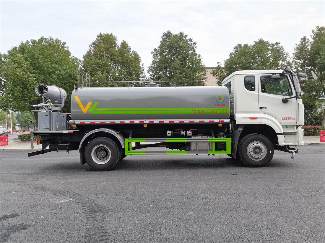 上裝配置:罐體容積 12-15立方,風送式霧炮機組30米,40米選擇,罐體采用國標Q235碳鋼材質,罐體厚度4MM,前后封頭5MM加厚型,罐體內雙層隔板具有防波蕩作用,以減輕汽車行駛時罐內液體沖擊;灑水車整車及外形尺寸嚴格按照**機動車公告制作而成;裝配大功率專用灑水泵,前沖、后灑、側噴、后平臺帶綠化灑水炮,灑水炮可全方位旋轉,可連續調成直沖狀、大雨、小雨、毛毛雨;配消防接口,自流閥,濾網,帶自吸自排功能。前封頭帶水位計,后平臺主管路帶1寸澆花接口,后爬梯,帶1個消防接頭,帶1個自流閥,1個過濾裝置,其余標配。