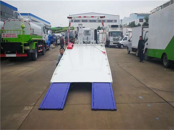 該車平板長度4.2米,寬2.3米,平板采用新型一次性成型帶孔沖壓板或4個(gè)厚花紋板,尾板可選用翻轉(zhuǎn)板或新款抽拉式尾板,尾板長1.2米,3噸上裝,配液壓絞盤4噸,21米鋼絲繩,雙側(cè)聯(lián)動(dòng)操作.