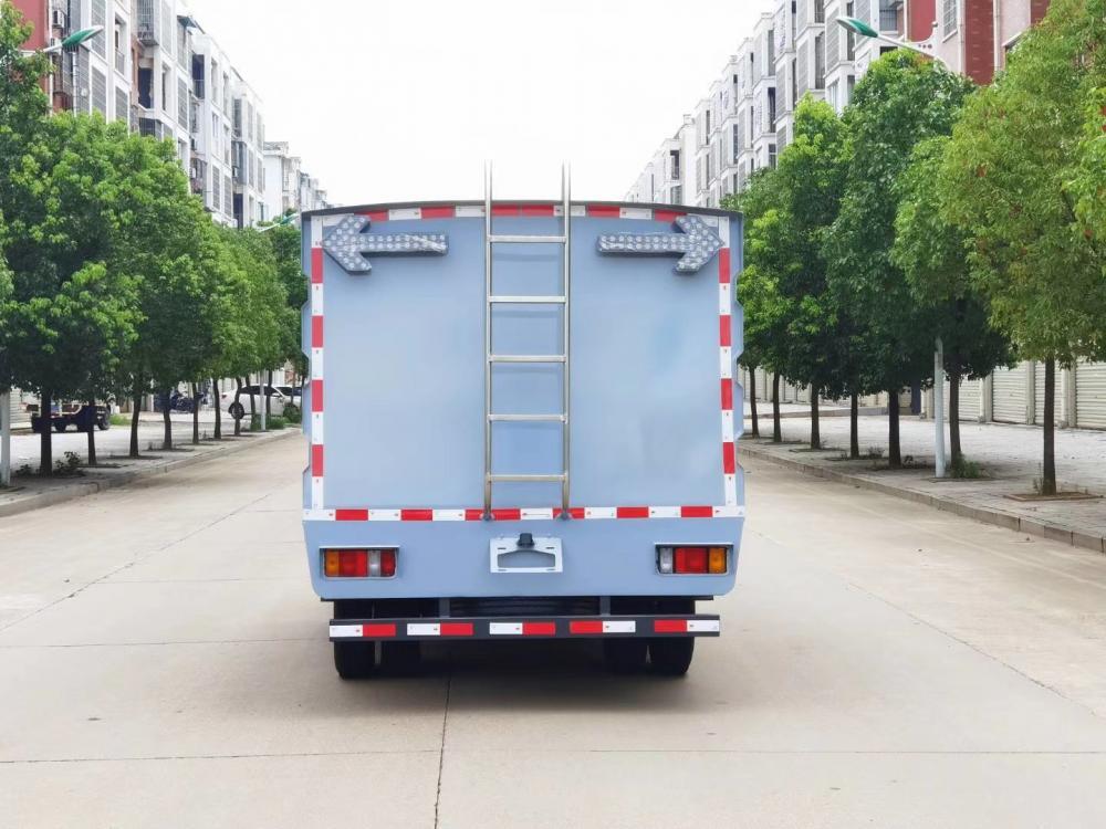 3、車廂體前部設(shè)自動(dòng)護(hù)欄清洗車自動(dòng)伸縮門,非作業(yè)狀態(tài)時(shí)內(nèi)藏清洗工作裝置,避免工作裝置外露,提高裝置使用壽命。