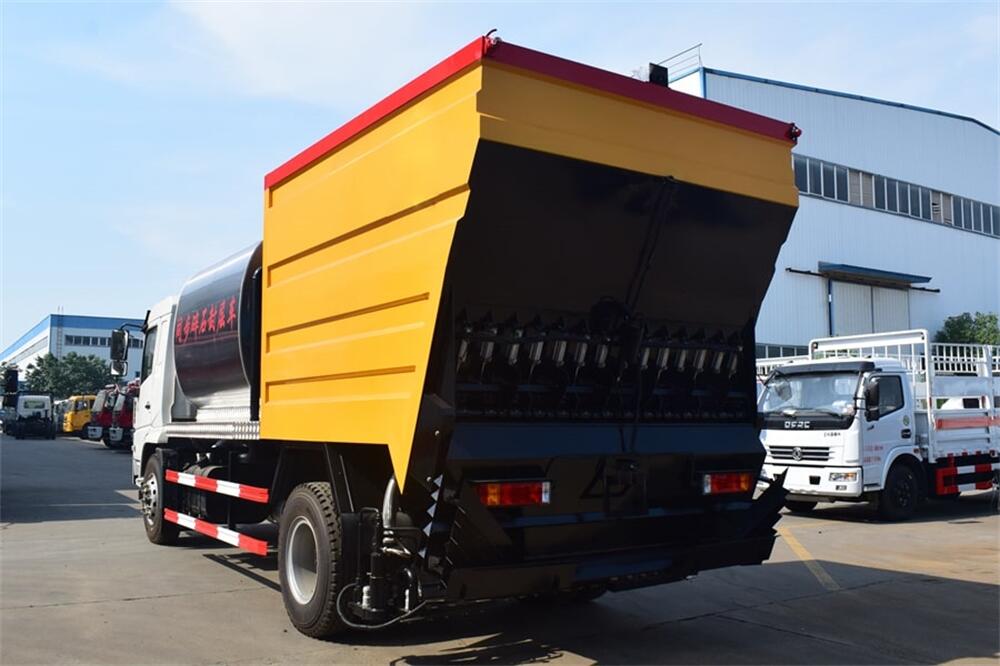 4、后雙橋同步碎石封層車完全采用電氣**,自動化程度高,,能**的計算出設備在施工過程中瀝青噴灑量和石屑撒布量的多少;