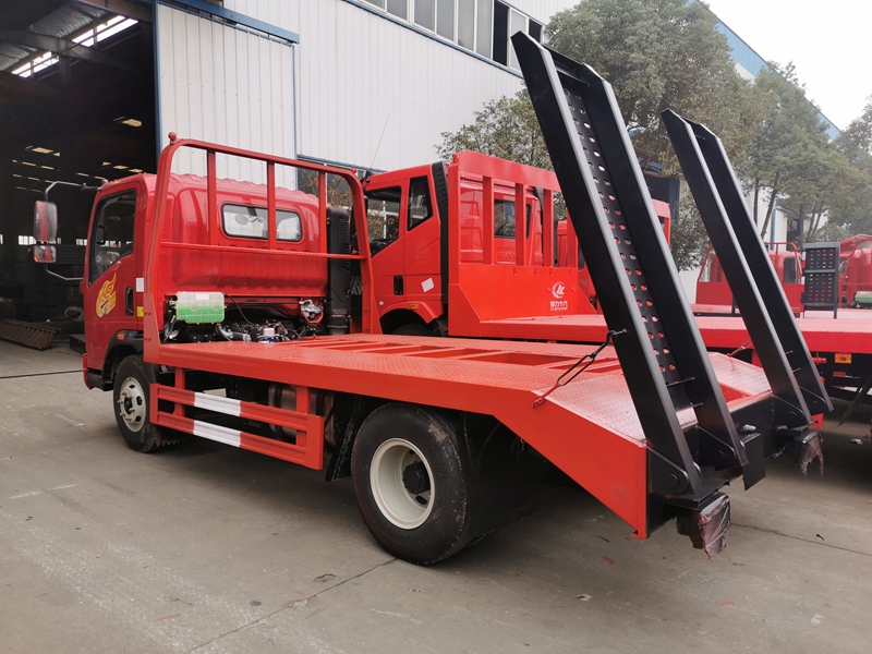 上裝采用五毫米花紋鋼板,100*100方鋼做橫梁,簡易爬梯,可拉12噸以下挖機??衫?2噸以下挖機!