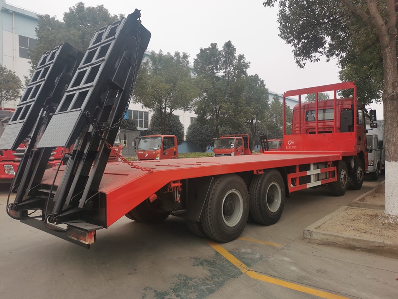 | 其他 | 備注:該車專用裝置為平板,用于工程機械和一些不可拆卸貨物的長途運輸.防護材料:Q235碳鋼,連接方式:左右側面與平板縱梁采用焊接連接, 后部防護與車架采用焊接連接,后部防護斷面尺寸(mm):50×120,后部防護離地高度(mm):490;隨底盤選裝同系列駕駛室、遮陽罩及保險杠,選裝不同樣式的爬梯.ABS系統生產廠家及型號為:廣州市科密汽車制動技術開發有限公司/CM4XL-4S/4K(4S/4M), 西安正昌電子有限責任公司/ZQFB-V, 浙江萬安科技股份有限公司/VIE ABS-Ⅱ;安裝具有衛星定位功能的行駛記錄儀.發動機WP12.375E50 對應的油耗值為:40.48。整車長/軸距/后懸對應關系為(mm):11900/1800+4575+1400/2600,11300/1800+3975+1400/2600,10900/1800+3575+1400/2600,10400/1800+3000+1400/2675.選裝不同樣式的爬梯結構。 | ||